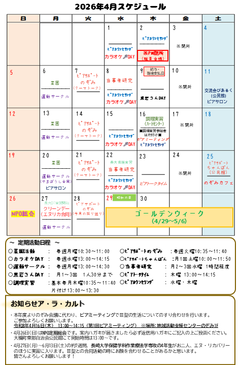 ピアサポート活動や様々な行事等を通して、