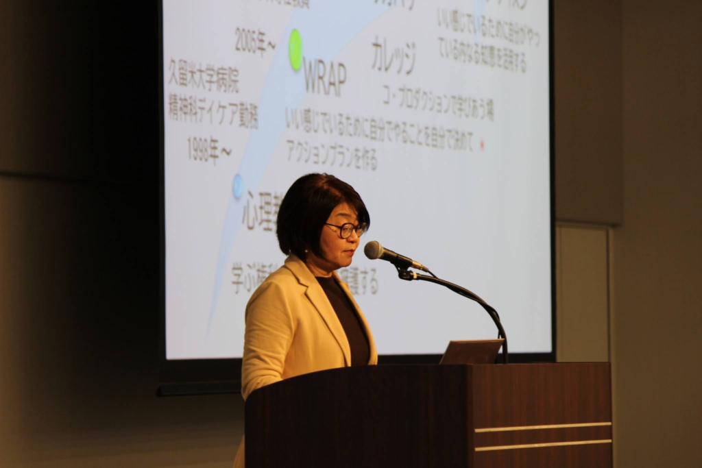 続く、福島県にある「リカバリーカレッジうつくしま」の会田亜希子氏の語られた「学び合おうという考えが大切であり、何よりも『人とのつながりの中で』の学び合いを通じてのリカバリーは大きな支えになる」というお話は斬新で心に残る内容でした。